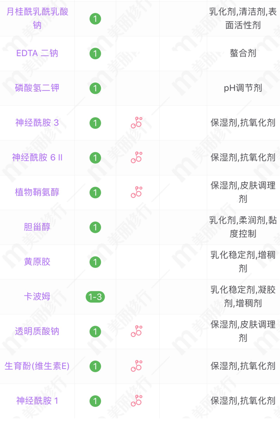 这款面霜里面含有向日葵、卡波姆、法地揽仁、生育酚乙酸酯等等成分,可以保湿,很滋润补水,还可以舒缓肌肤,调理皮肤等等效果。