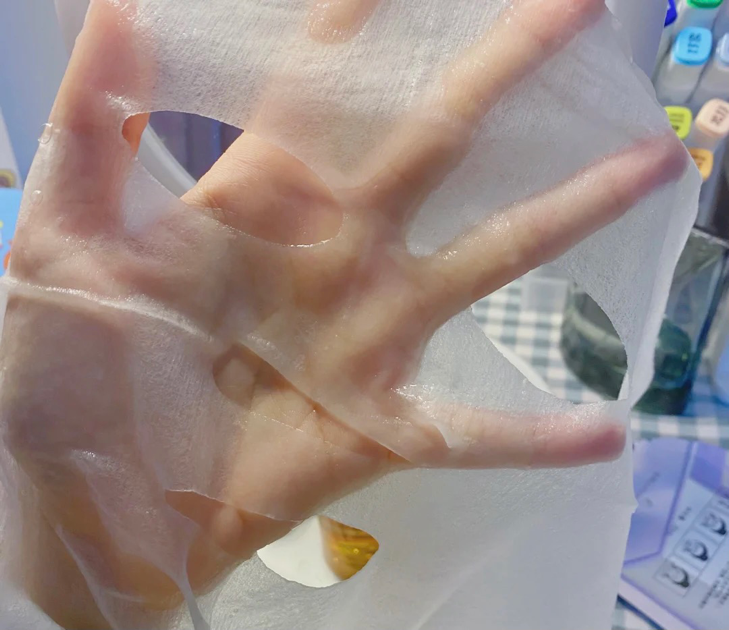 这款面膜的面膜纸是那种特别的服帖,而且它很薄韧性也是不错,不会一撕就烂,而且它的精华量也是特别的足,满满的精华隔着袋子都可以感受到。