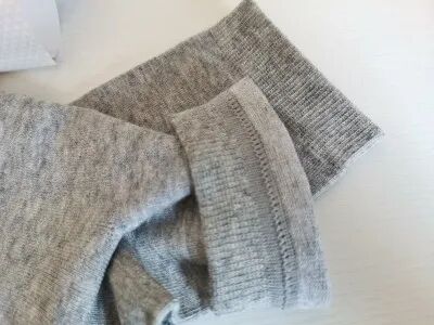 这款袜子质地就稍微厚一些了,从它的成分方面来看,它含有30%以上的羊毛,但是温和不扎脚,里面有毛绒设计: