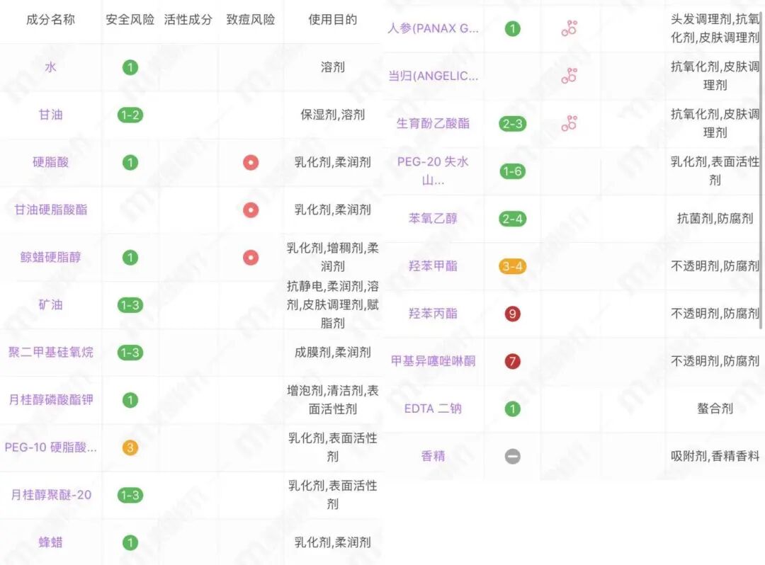 有效的抗老成分有人参、当归等,防腐剂还是添加得较多的,不建议敏感肌使用。适合大多数肤质。