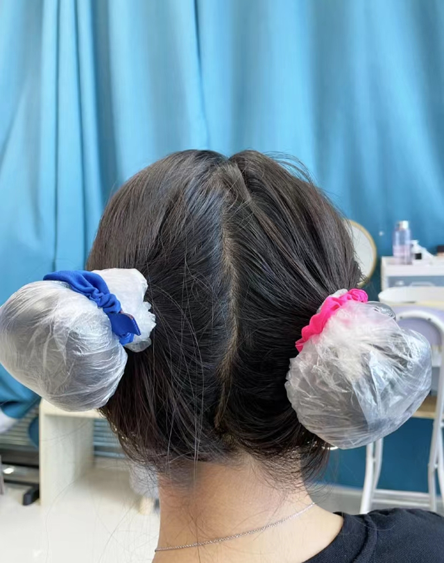 然后套上保鲜袋,让头发充分吸收椰子油的滋养: