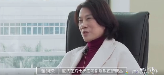 董明珠说到,她以前从来都不擦护肤品,直到如今上了60岁之后还会稍微涂一些护肤品。可见董明珠对于护肤品的追求不高。