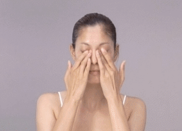 小时候在做眼保健操的时候,相信大家都听过“轮刮眼眶”吧?我们晚上睡觉之前也可以记住这个动作:将大拇指抵在太阳穴的地方,轻轻按压太阳穴,有利于舒缓皮肤,然后再将食指轮刮上下眼眶: