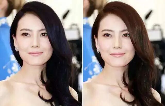 例如下图,女神高圆圆的黑发和棕发,是不是黑发更有质感?