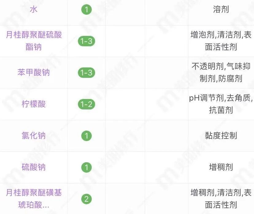 它是非皂基的洗护产品,所以能够减少对肌肤的刺激,而且还是无泪配方,不小心掉到眼睛里也没刺激。成分表中没有危险成分,没有paraben类防腐剂,但是含有少量香精。