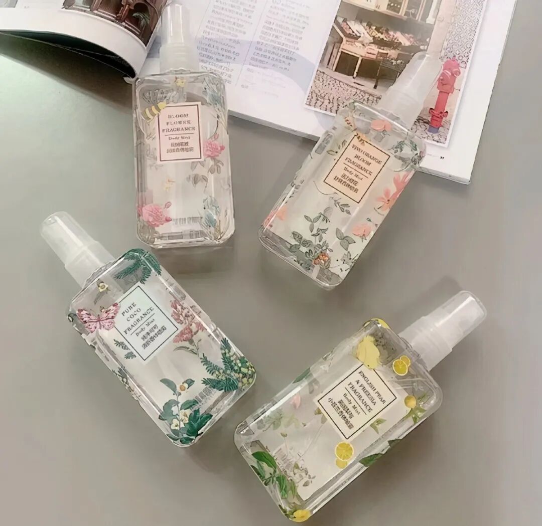 这款喷雾样式简单,就是个封了塑料的小喷壶。他们家的香体喷雾也有好几个香型,其中几个还是大牌的平替。就比如英国梨与小苍兰这一款,是祖马龙英国梨的平替,活力橙花是祖马龙橙花香水平替,花悦绽放是古驰Bloom平替,而纯净可可是香奈儿coco的平替。