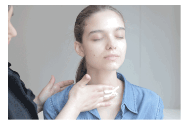 2、按摩脖子的时候也不要胡乱按摩一通,最好是顺着脖子往上按摩到淋巴的地方,也就是我们下颌线和耳朵后面: