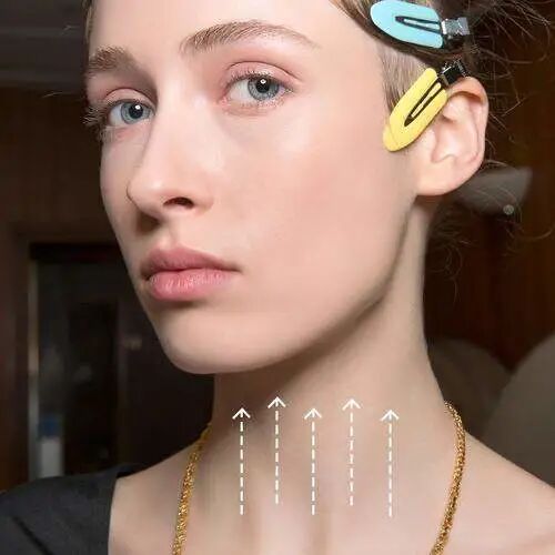 顺着这个方向涂抹,不要来回涂抹,既能够加强颈部皮肤的血液循环,同时也能提拉颈部周围的皮肤。