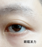 而眼眶发力则是眼皮稍微用力一些,而且会把下眼睑同样带动,这种就是眼眶发力,眉毛基本不动: