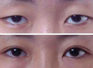 一个眼皮是自然放松的情况下呈下垂状态,另一个眼皮是眼眶发力之后向内收缩的状态(并不是瞪眼),很明显眼眶发力时,眼睛看上去更有力量。