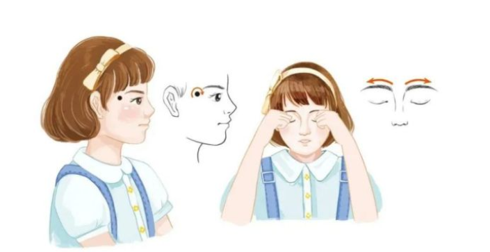 今天给大家讲一个能够针对眼周皮肤的抗皱方法——眼保健操按摩法。就是下面这个动作,按太阳穴,轮刮眼眶: