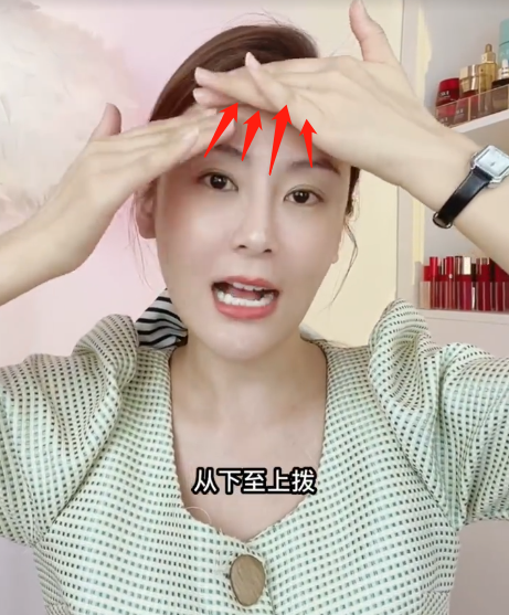 在日常涂抹面霜的时候可以从这个手法慢慢按摩眉间和额头的皮肤,即便没有涂面霜也可以重复这个动作,缓解额头和眉间的皱纹。