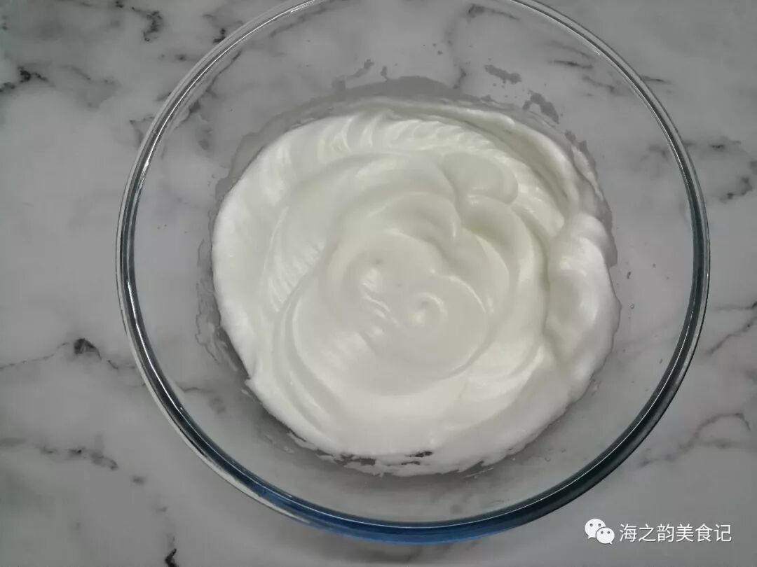 【材料】低筋面粉50克,炼奶30克,玉米油45克,细砂糖35克,玉米淀粉3克,全蛋1个,蛋清3个,蛋黄3个