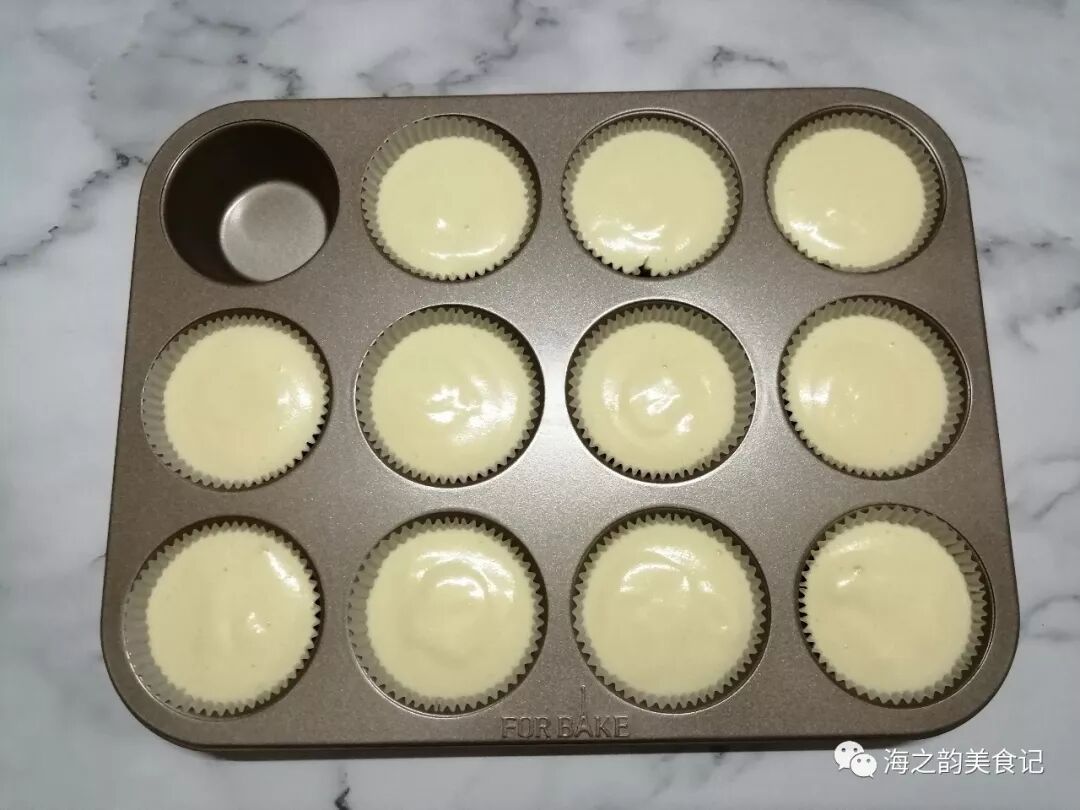 8、用勺子把蛋糕糊舀入蛋糕纸杯中,大概可以做11个。