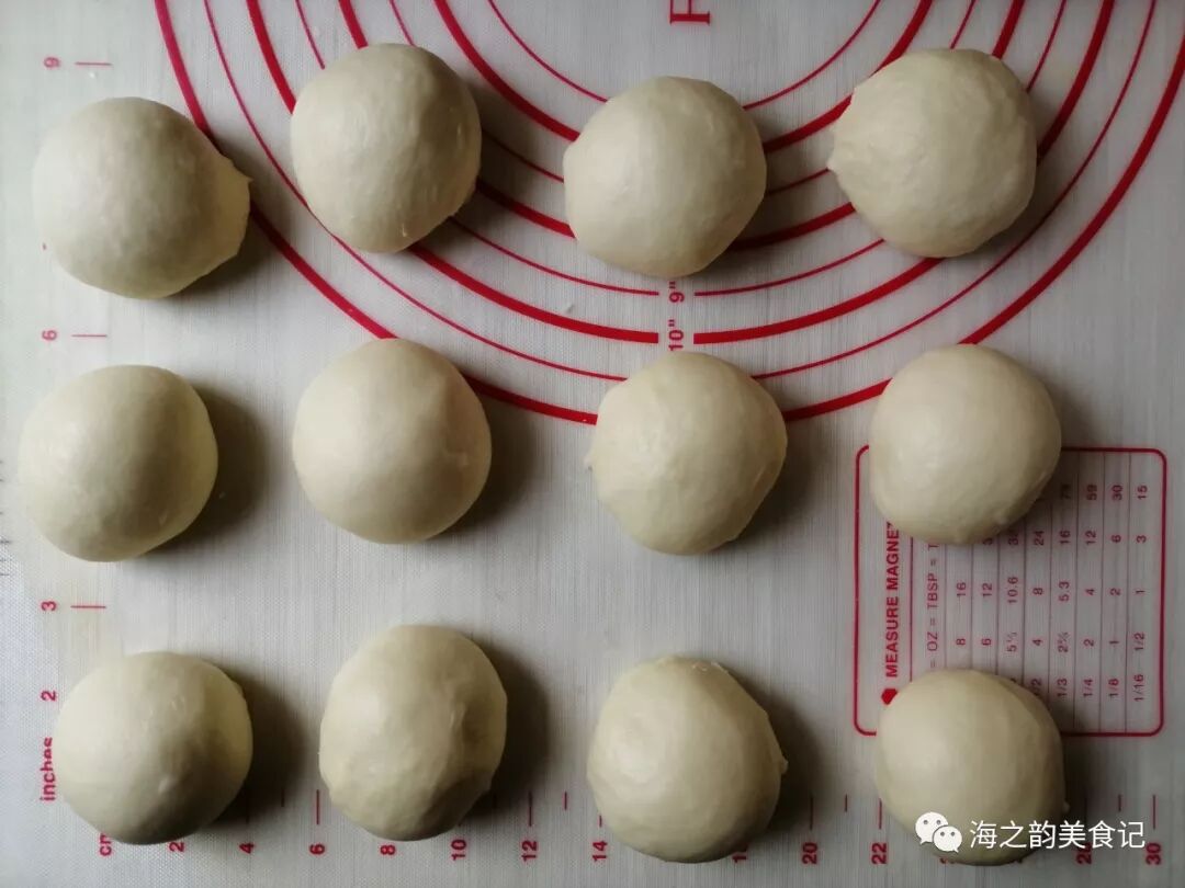 3、把和好的面团分成12等份,每一份大概是50克,滚圆,盖上保鲜膜。