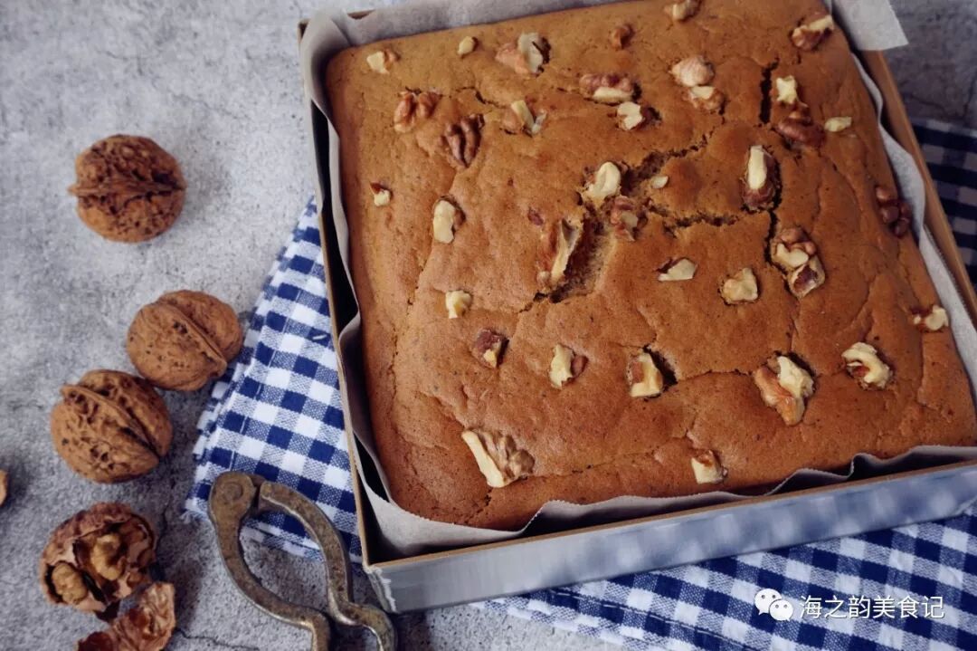 11、烘烤结束,把蛋糕取出,放在晾架上晾凉,香甜好吃有营养的枣泥核桃蛋糕就做好了,赶紧尝一尝。