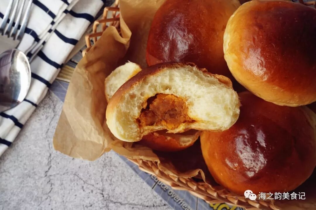 这个肉松咸蛋黄面包,采用的是一次发酵法,制作时间短,馅料是肉松加上咸蛋黄,这两种不同的食材,当它们搭在一起后,无论做什么食物都会特别好吃,分分钟成为网红食品。当你一口咬下去的时候,能吃到酥松绵软的肉松和沙沙的咸蛋黄,吃多几个也不会吃腻。
