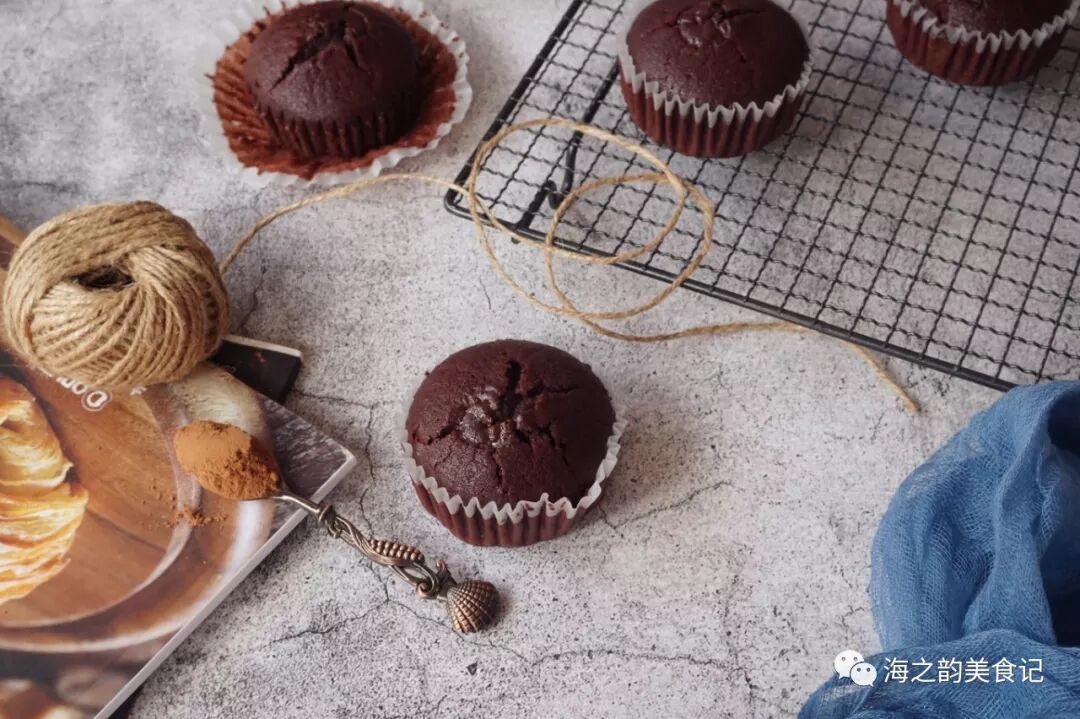 【食材】低筋面粉80克,可可粉20克,无铝泡打粉4克,无盐黄油75克,牛奶90克,鸡蛋1个(蛋液50-55克),细砂糖60克,盐1克,巧克力豆20-30克
