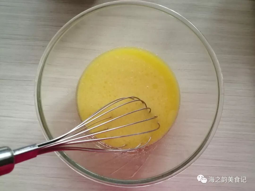 3、用手动打蛋器搅拌均匀,拌至糖溶化,没有水油分离。