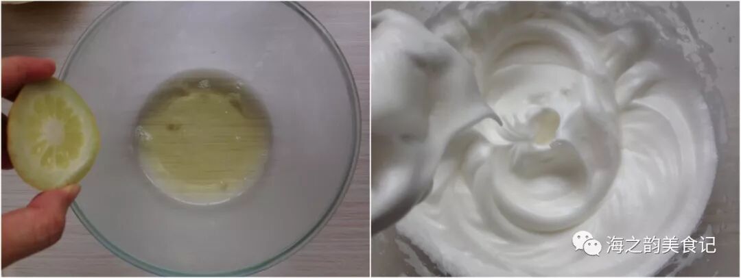 7、柠檬汁滴入到蛋清里,用电动打蛋器打起粗泡。