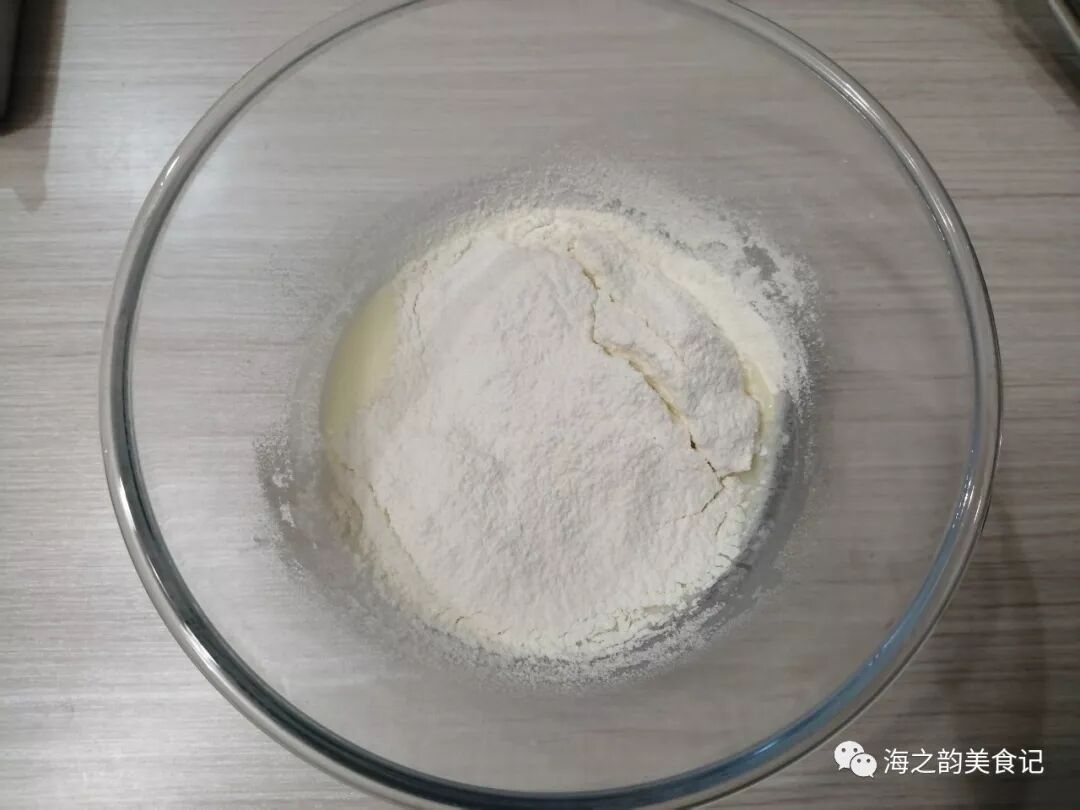 2、把低筋面粉过筛进去,用手动打蛋器划Z字拌至不见干粉,不要过度搅拌,以免起筋。