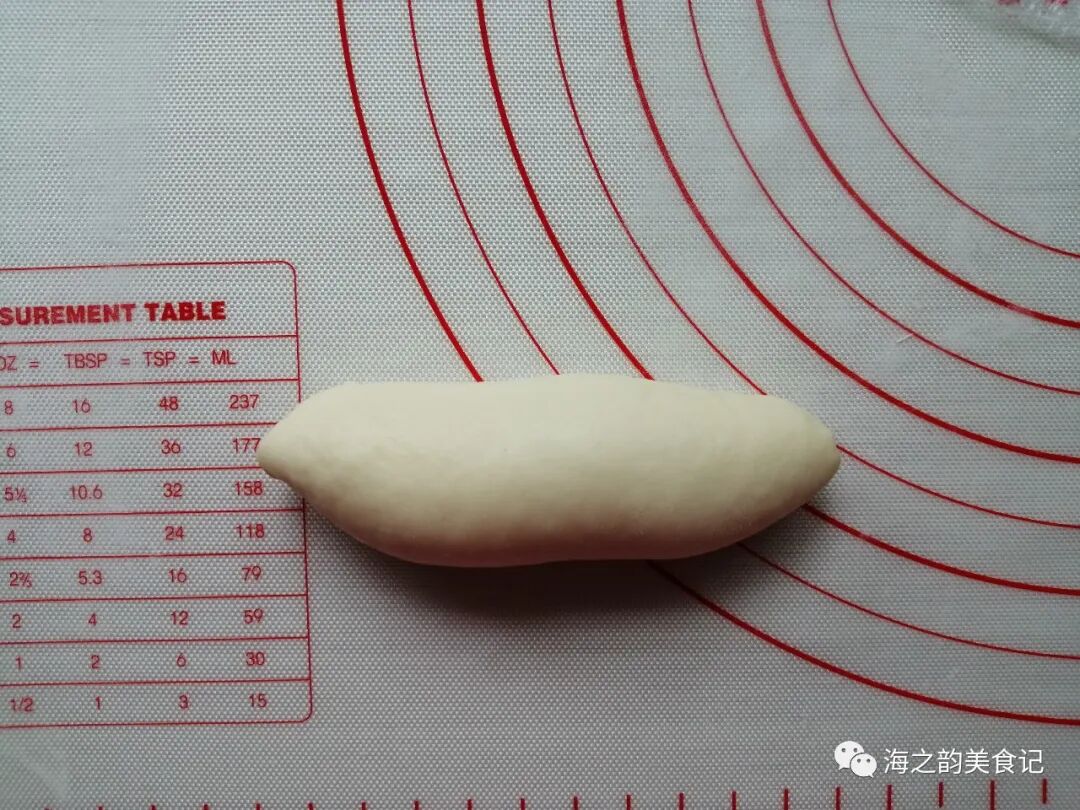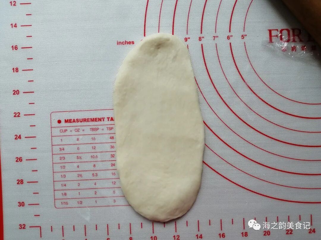 6、把小面团擀成椭圆形。