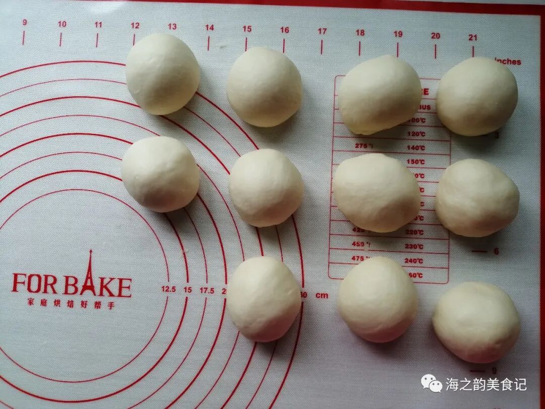 5、用切面刀(不要用手去扯面团)把面团切成11小份,并滚圆,盖上保鲜膜松弛15分钟。松弛的目的是防止面团在擀的过程中回缩。