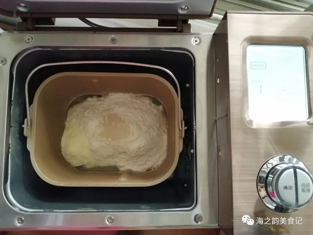 2、把面包桶放入到面包机里,选择和面程序12分钟。