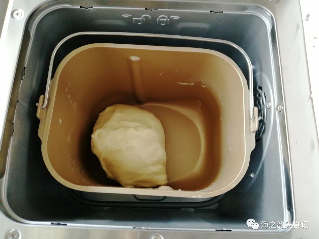 面团:面包粉250克,低筋面粉50克,牛奶183克左右,鸡蛋液40克,细砂糖30克,盐3.5克,耐高糖酵母4克,黄油25克