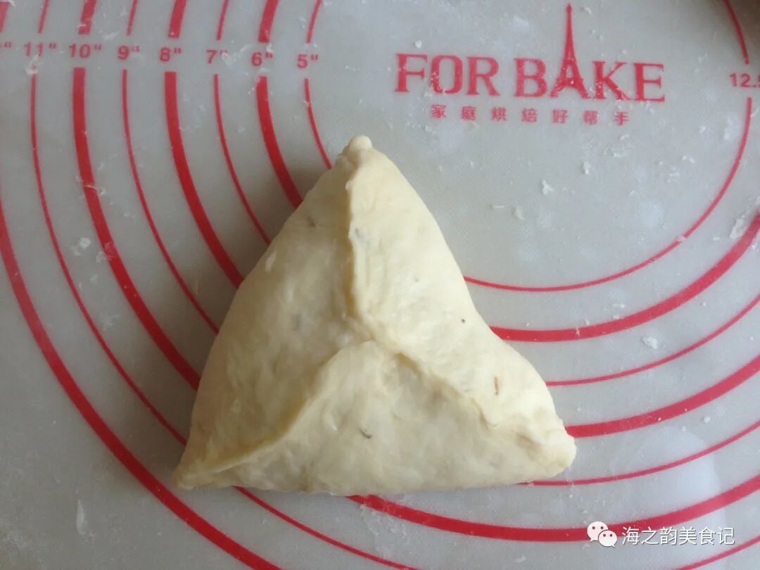 8、收口朝下,放在不粘烤盘上,放入烤箱中,用烤箱的发酵档35度,发酵50分钟左右(烤箱内放置一碗热水,使烤箱内有一定的湿度)。
