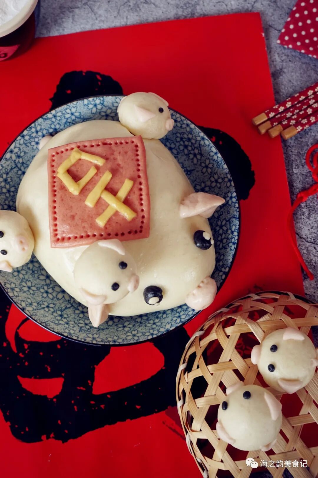 做这个母子猪馒头,需要分两步来做,先做小猪,再做母猪。你可以分两天做,也可以像我这样一次做出来。一般做造型馒头,我都是用一次发酵法。因为制作的时间稍长,所以不需要第一次的面团发酵。只需要整形后发酵就可以了。做好的馒头很喧软,不是扎实的口感。