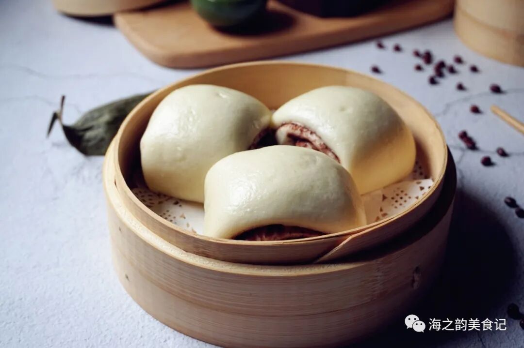 【材料】中筋面粉200克,奶粉10克(可不加),细砂糖15克,温水100克,自制豆沙馅150克