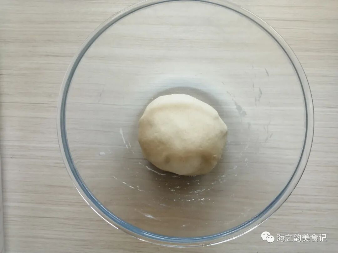 2、一边倒水,一边用筷子把面粉拌成絮状,再用手把它们揉在一起,揉成光滑的面团。刚开始面团可能比较难揉光滑,静置3分钟再揉,你会发现面团易揉很多了。揉好的面团放在和面盆里,盖上盖子,室温下发酵1.5倍大,大概发酵了40分钟。你也可以用一次发酵法,面团和好后直接整形。