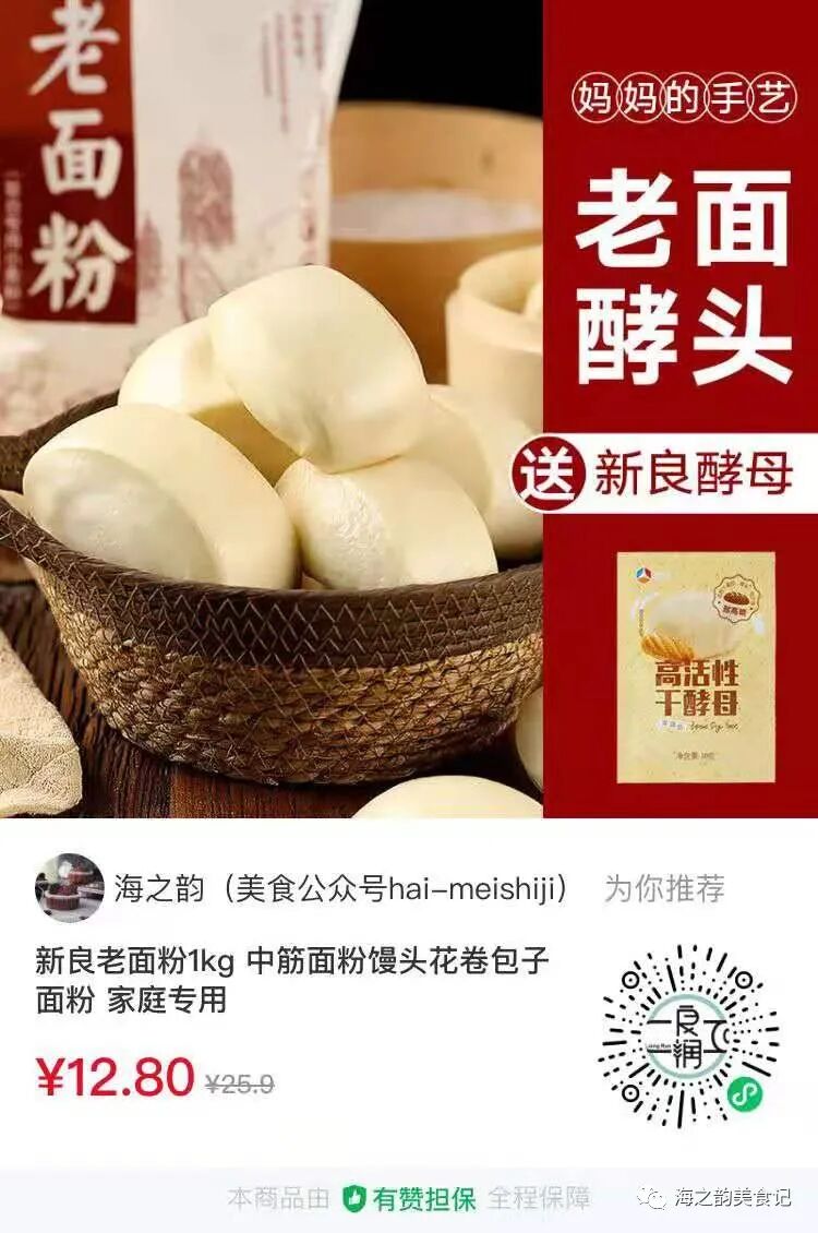 我这里用到的是老面粉加荞麦粉,你也可以全部用中筋面粉代替。一般我做面食喜欢加点粗粮面粉,而荞麦粉是用去壳荞麦米研磨出来的纯荞麦粉,含有膳食纤维,但口感却不粗糙,这样搭配肉类的香肠一起吃,营养更均衡。用老面粉放的酵母量少一点,如果是用普通中筋面粉,酵母量改为2克。