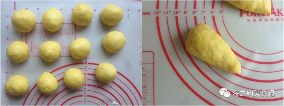 5、发酵好的面团轻压排气,分成12等份,滚圆,盖上保鲜膜,松驰15分钟。