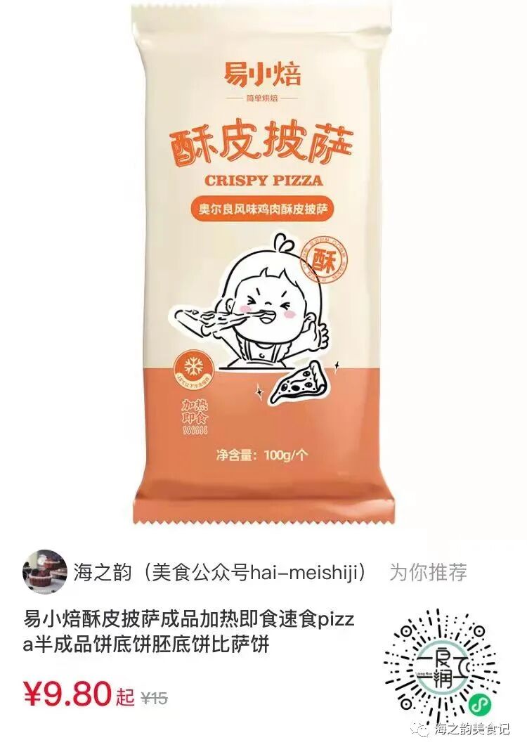 这个是加热就可以吃的披萨,一包一人份,总共有3种味道:鸡肉酥皮披萨、培根酥皮披萨和至臻酥皮披萨。室温解冻,放入预热好200度的烤箱,实际烘烤温度要根据自家烤箱脾气而定,烘烤5分钟左右,表面芝士融化,饼底边缘微微焦黄。我试过烤5分钟和7分钟,更喜欢烤了7分钟的饼底口感。