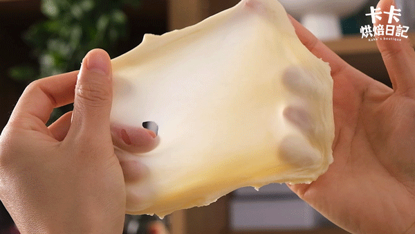 它的做法对新手来说还蛮友好的,面包体部分,只要把材料一股脑地揉出柔韧的手套膜,等它静静发酵就好。