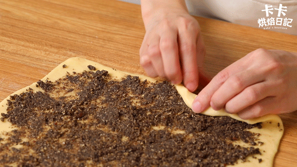 再把这粘稠香甜的馅料,往擀开的面团上一抹,一卷就搞定了~