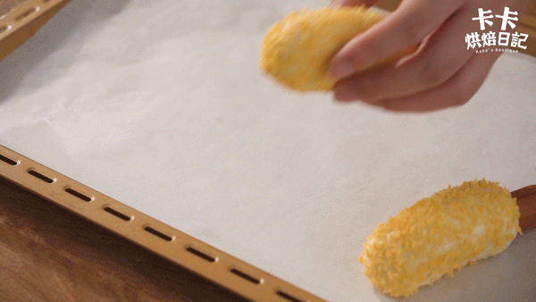 裹上面包糠,放入烤盘,在38℃,湿度80%的环境进行二次发酵到1.5-2倍大。
