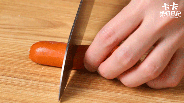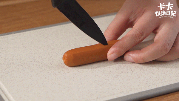 章鱼的“腿”,只需将热狗肠从中间的位置,平均垂直切成6条就大功告成。