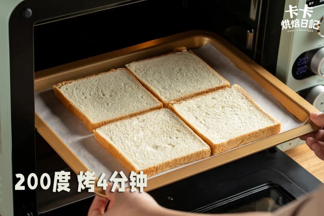 👉温度要高,200℃烤4分钟,这样才能做到外焦脆内柔软。