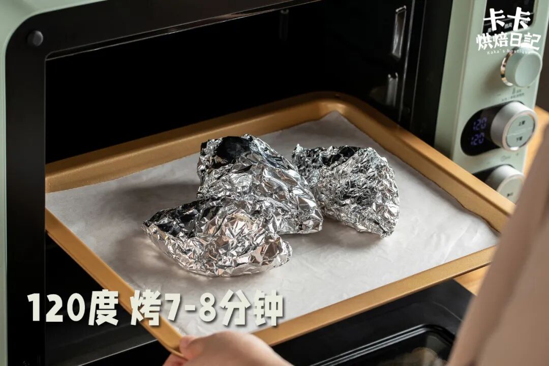 👉120℃烤7~8分钟,出炉放凉后会变酥脆。