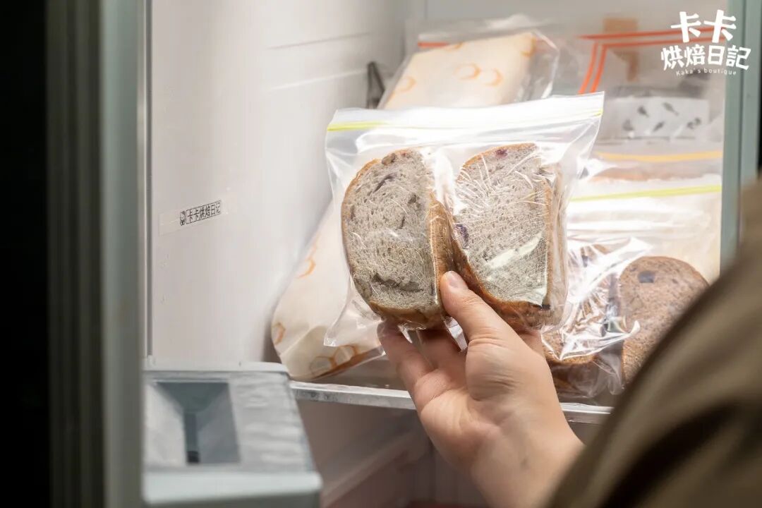 👉冷冻前建议:先把面包分切,放入密实袋再冷冻,避免反复冷冻解冻,面包风味口感会变差。