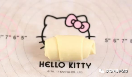 7、然后由上而下的卷起来,卷的时候稍微卷紧一些。另外面片建议擀长些,这样卷起来的圈数越多,做好成品的组织也会更好看。