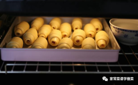 9、送入烤箱中层,烤箱内再放碗温热的水,关上门后,选择发酵档,发酵至2倍大