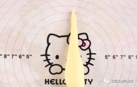 5、15分钟后,取一个松弛好的小面团,将它搓成水滴状,如下图所示