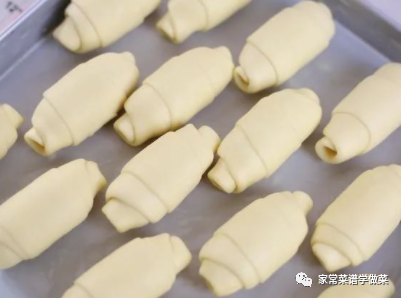 8、全部擀卷好后,摆入烤盘中,烤盘需要提前涂抹软化的黄油防粘,或者垫油纸也可以。另外今天用到的烤盘大小是28cmx28cm,大家制作的时候可以参考下