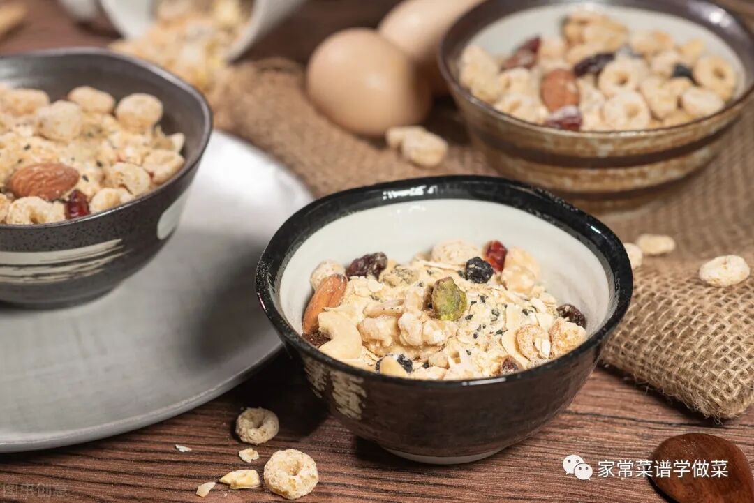 冬天人体消耗的能力巨大,这个时候需要补充一些高蛋白的食物,传统早餐,大家可能吃点鸡蛋或者是其它的肉包子之类的,可随着天气寒冷,很多人都不愿意去吃,那么家里可以备上一点坚果营养麦片,它是我认为比较好的早餐,里面含有大量的坚果,而且麦片这些也是非油炸的,让你饱腹的同时有更健康。