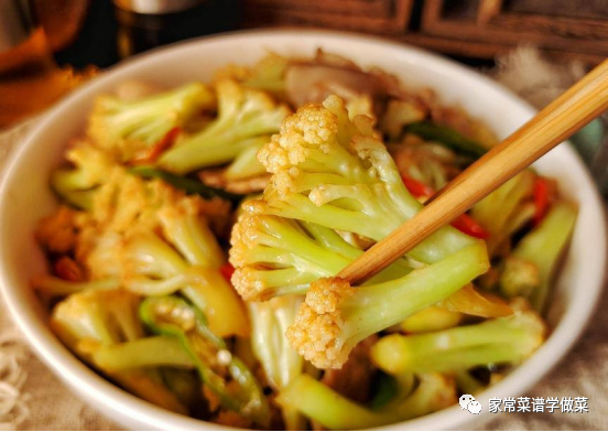 像我们平时爱吃的花菜、红薯、韭菜这些蔬菜食材,它们都属于粗纤维食物,每天都早餐换着花样炒着吃就可以补充营养、促进肠胃健康。