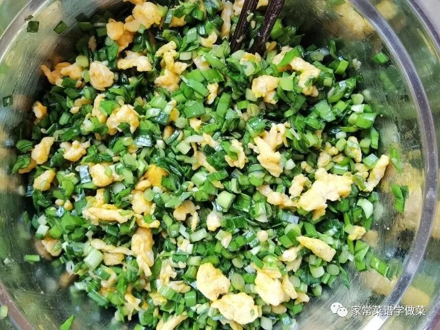 准备一些鲜嫩的韭菜,摘洗干净,去掉老叶,放在通风处,控干水分,改刀切成碎馅,加入一勺芝麻香油,另外把鸡蛋煎熟,晾凉放进来,加入适量的蚝油、食盐和五香粉,搅拌均匀,馅料就制作完成了。